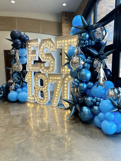 Add some flare to your install with foil or chrome balloons, florals, pearls, etc.